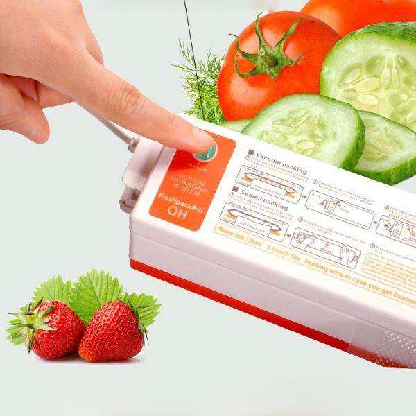 يقوم هذا الجهاز بتغليف الأطعمة بواسطة وضع الاكياس داخل الجهاز ، وهو يقوم بتغليف الأطعمة في هذه الأكياس بواسطة إفراغها من الهواء ثم يقوم بكبسها وإغلاقها جيداً .