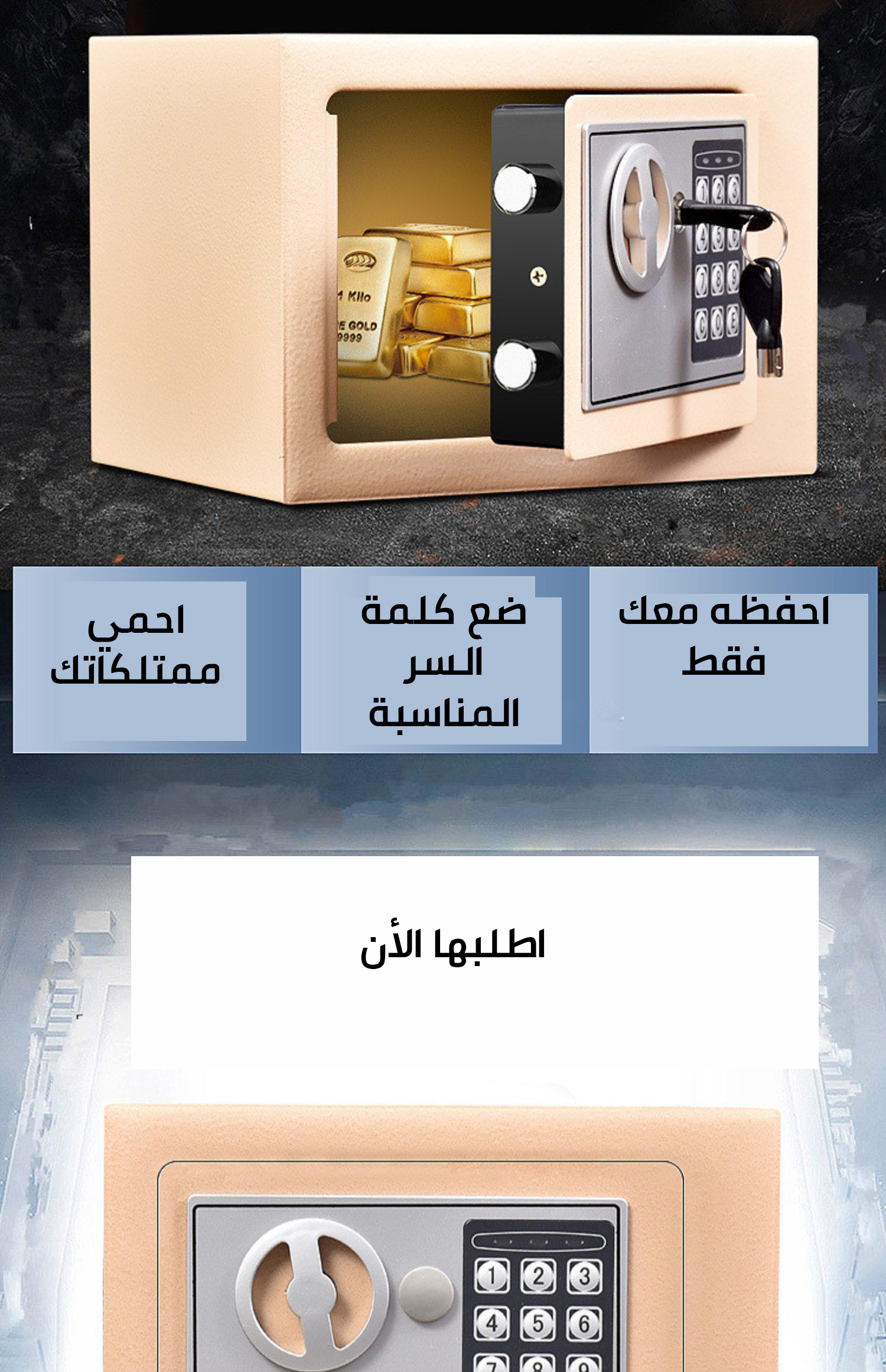 من الأن يمكنك الحفاظ على ممتلكاتك دون القلق أو الخوف عليها من خلال استخدامك لهذه الخزنة الأمنة جدا .