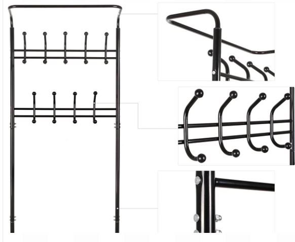 نقدم لك علاقة الملابس هذه ذات هيكل صلب يتميز بالمتانه حيث أنه مصنوع من الحديد الصلب القوي الغير قابل للصدأ والخشب الرائع بحجم مثالي وموفر للمساحه وتصميم عملي سهل النقل والحمل وسهل التنظيف والتجميع يتكون من 9 علاقات علوية وسفلية لتمكنك من تعليق أكبر قدر من الملابس والحقائب والمعاطف كما تتكون منن 3 رفوف بلون خشبي راقي تمكنك من تنسيق أحذيتك وصناديقك وغيرها الكثير