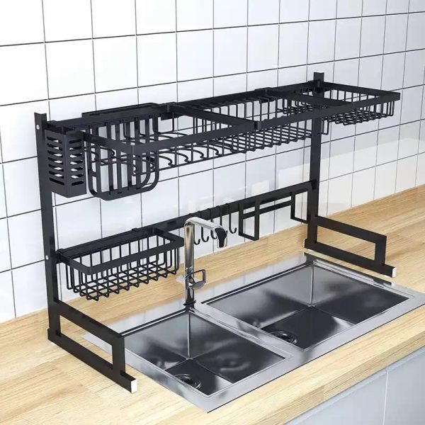 ستاند مجلى ستانلس ستيل مقاوم للصدأ والرطوبة مصمم به سلات للصحون والكاسات وسلات للمعالق والسكاكين وقاعدة لفرامة الخضار فهو يحمل منظر أنيق وذاب ويعطي أناقة لمطبخك