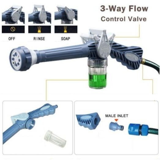 فرد ضخ المياه ايزي جت يقوم بتقوية المياه لغسل السيارات او للنباتات او لتنظيف الحديقة فهو يقوم بتوقير استخدام المياه وتقوية ضخ المياه وبه 8 حركات وبه علبه لتعبئة الشامبو بها وضخ الرغوة