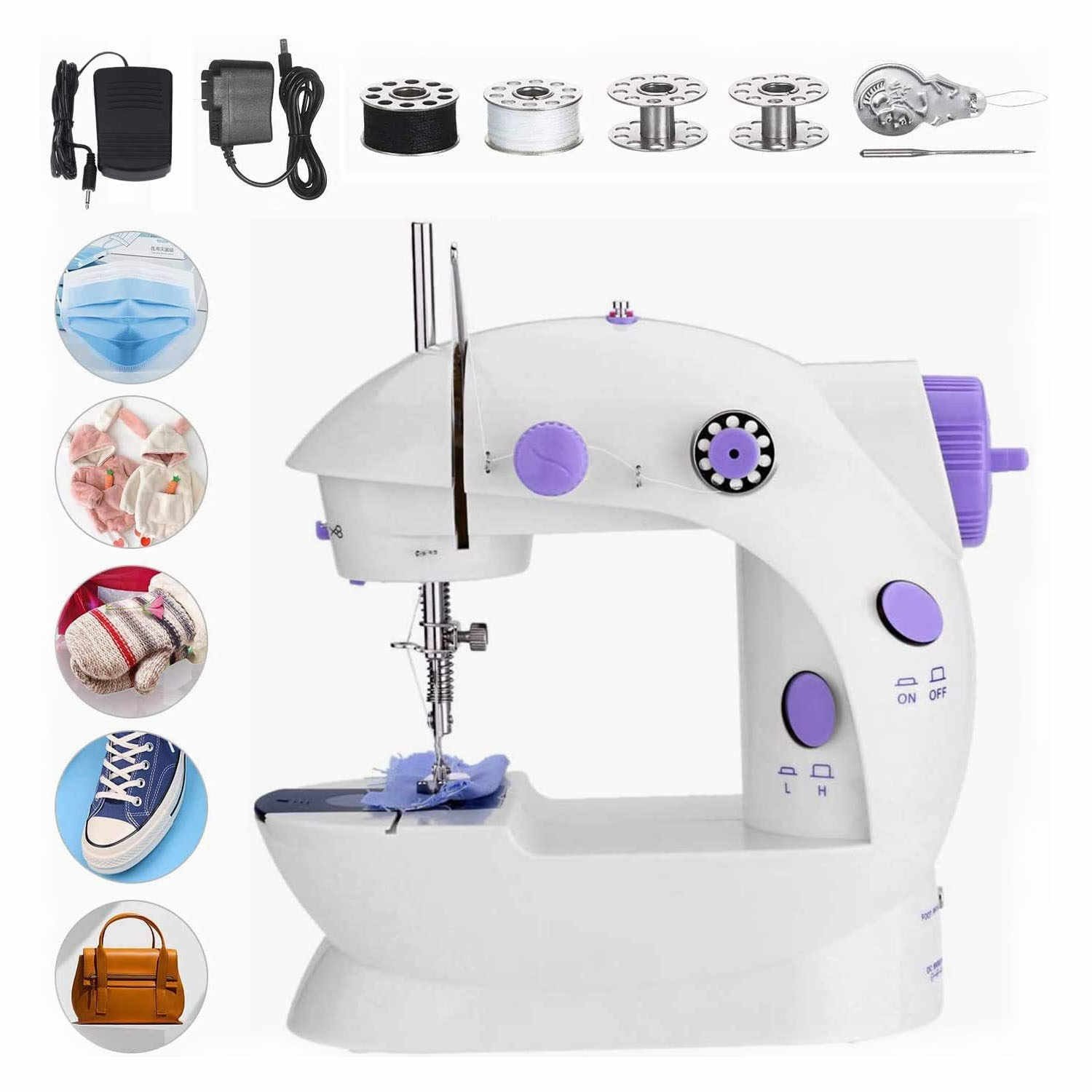 ماكينة خياطة صغيرة ومحمولة تعملع ىل الكهرباء وتعمل نفس عمل الماكينة الكبيرة ولكن بشكل مصغر بها سرعات مختلفة